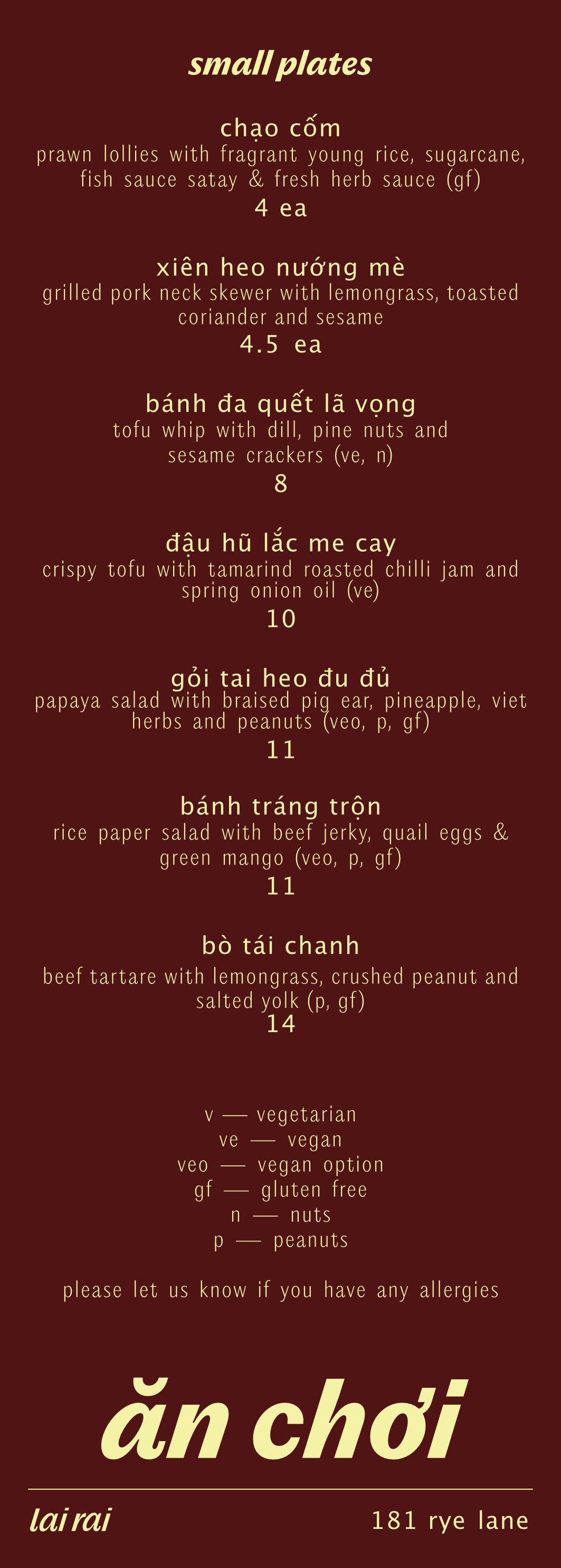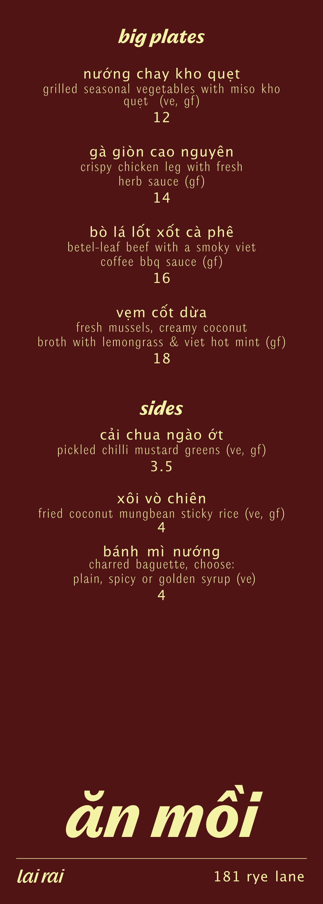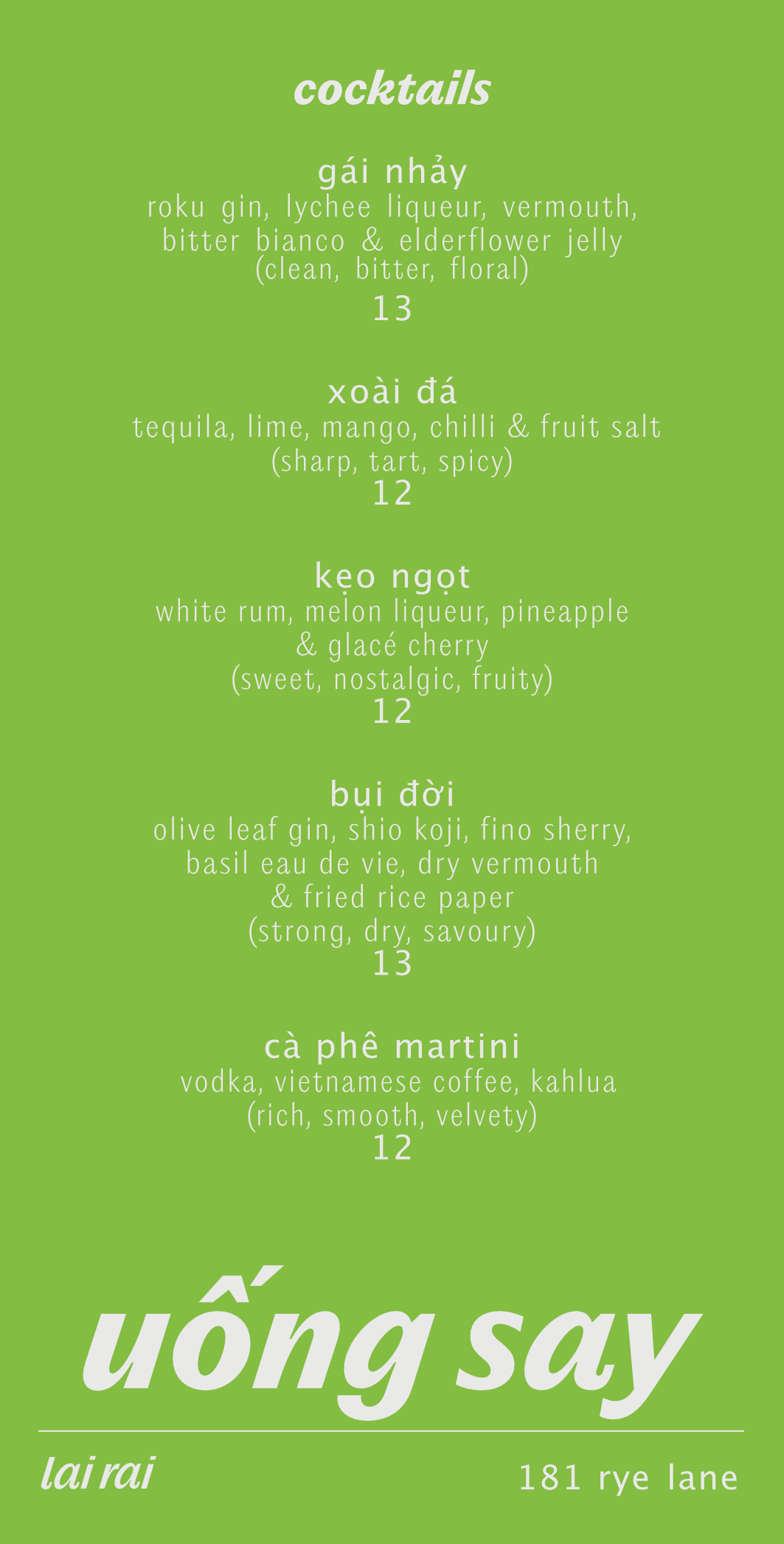 bánh mi and viet coffee available in the daytime. small plates and cocktails in the evening.